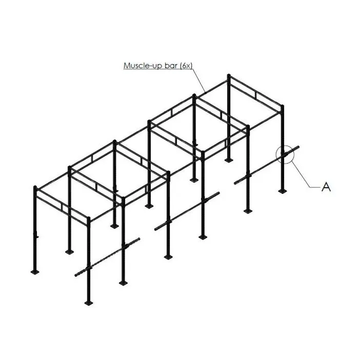 Crossfit Stations zijn professionele constructies die alles in zich hebben wat je nodig hebt voor een goede training. Hierboven staat een model als voorbeeld. Zo kun je het station, in deze opstelling bestellen. De afwerking van dit Crossfit Rig is van zeer hoge kwaliteit. Made in Holland en gemaakt van sterk staalwerk met een dikte van 4 mm. De standaard afwerking is zwart, zijdeglans, die is afgewerkt met een hoogwaardige KTL lak. Je kunt dit rek ook bestellen met een poedercoating. Het heeft dan een fijne korrel-structuur. Je kunt daarnaast ook een speciale een outdoor-coating, voor buiten, laten aanbrengen. Informeer bij ons voor de meerprijs.