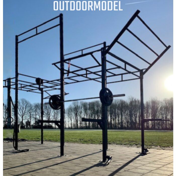 Crossfit Stations zijn professionele constructies die alles in zich hebben wat je nodig hebt voor een goede training. Hierboven staat een model als voorbeeld. Zo kun je het station, in deze opstelling bestellen. De afwerking van dit Crossfit Rig is van zeer hoge kwaliteit. Made in Holland en gemaakt van sterk staalwerk met een dikte van 4 mm. De standaard afwerking is zwart, zijdeglans, die is afgewerkt met een hoogwaardige KTL lak. Je kunt dit rek ook bestellen met een poedercoating. Het heeft dan een fijne korrel-structuur. Je kunt daarnaast ook een speciale een outdoor-coating, voor buiten, laten aanbrengen. Informeer bij ons voor de meerprijs.