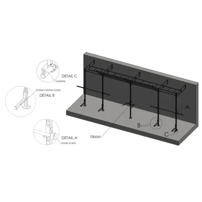 Crossfit Stations zijn professionele constructies die alles in zich hebben wat je nodig hebt voor een goede training. Hierboven staat een model als voorbeeld. Zo kun je het station, in deze opstelling bestellen. De afwerking van dit Crossfit Rig is van zeer hoge kwaliteit. Made in Holland en gemaakt van sterk staalwerk met een dikte van 4 mm. De standaard afwerking is zwart, zijdeglans, die is afgewerkt met een hoogwaardige KTL lak. Je kunt dit rek ook bestellen met een poedercoating. Het heeft dan een fijne korrel-structuur. Je kunt daarnaast ook een speciale een outdoor-coating, voor buiten, laten aanbrengen. Informeer bij ons voor de meerprijs.