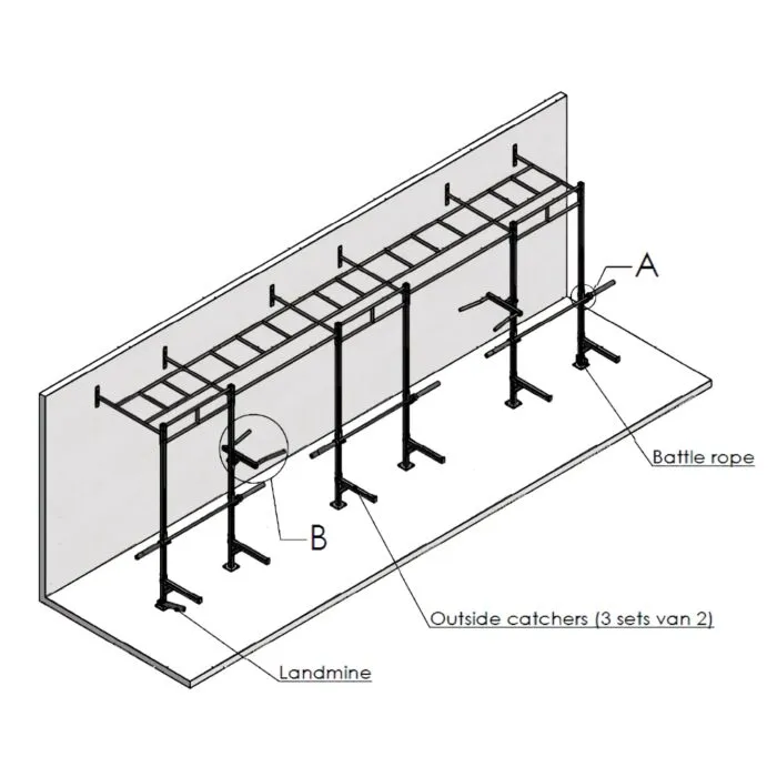 Crossfit Stations zijn professionele constructies die alles in zich hebben wat je nodig hebt voor een goede training. Hierboven staat een model als voorbeeld. Zo kun je het station, in deze opstelling bestellen. De afwerking van dit Crossfit Rig is van zeer hoge kwaliteit. Made in Holland en gemaakt van sterk staalwerk met een dikte van 4 mm. De standaard afwerking is zwart, zijdeglans, die is afgewerkt met een hoogwaardige KTL lak.