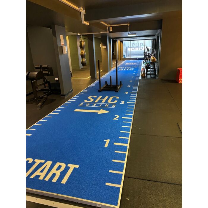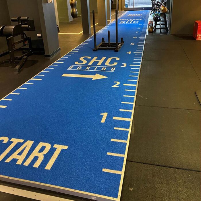 Deze variant is populair onder onze klanten. Onze custom-made variant wordt geproduceerd zoals u wenst. Op basis van maar liefst achttien kleuren, kan de sprinttrack exact worden geproduceerd op basis van uw eigen ontwerp. Hierbij kan de track worden afgestemd op uw huisstijl & interieur en oefeningen die u hierop wilt uitoefenen. Deze zware variant kunstgras is uitgebreid getest en hierbij afgestemd voor intensief gebruik voor sporttoepassingen. De combinatie van een korte vezel en een hoge dichtheid van de mat, zorgt ervoor dat de mat slijtvast is en hierdoor lang mee zal gaan als sportvloer. Het is ook mogelijk om deze custom-made track te verwerken in onze standaard uitvoeringen.