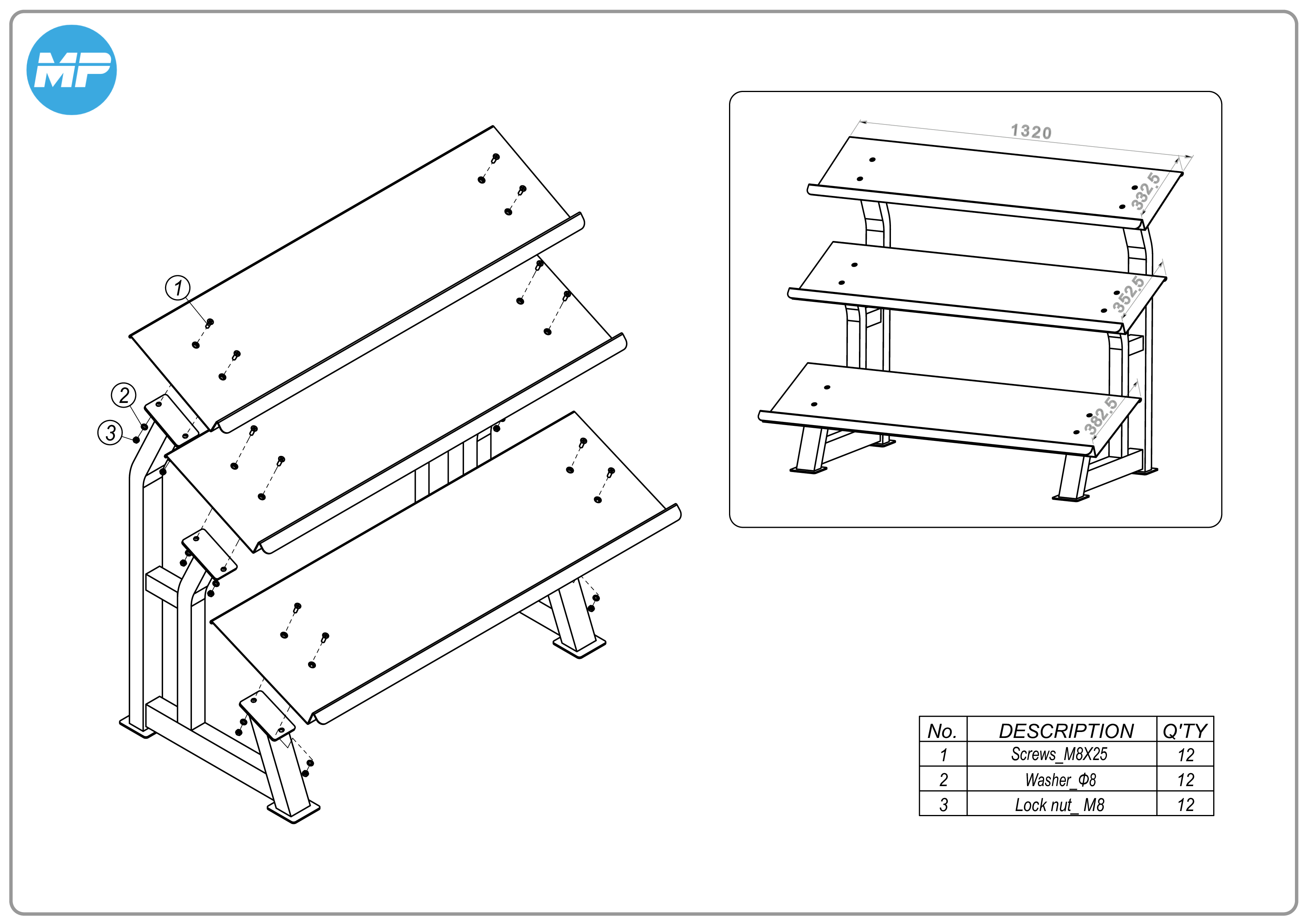 MP2315A Dumbbellrek Heavy 3 laags