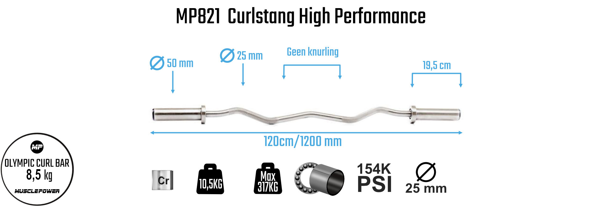 Zeer mooi afgewerkte curlstang met een diameter van 50 mm, geschikt voor alle halterschijven met een boring van 51 mm. De curlstang heeft een gladde halterschijven opname. De grepen van de Olympische high performance curlstang zijn voorzien van knurling voor een veilige en vaste grip. De sleeves lopen erg soepel door de speciale ball bearing lagers, tevens heeft deze curlbar mooie fijne geborstelde afwerking.