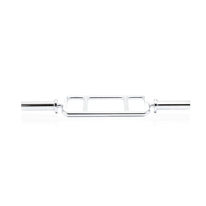 De halterstang is afgewerkt met een hoogwaardige chroom coating, wat zorgt voor een professionele uitstraling en extra bescherming tegen slijtage en corrosie.