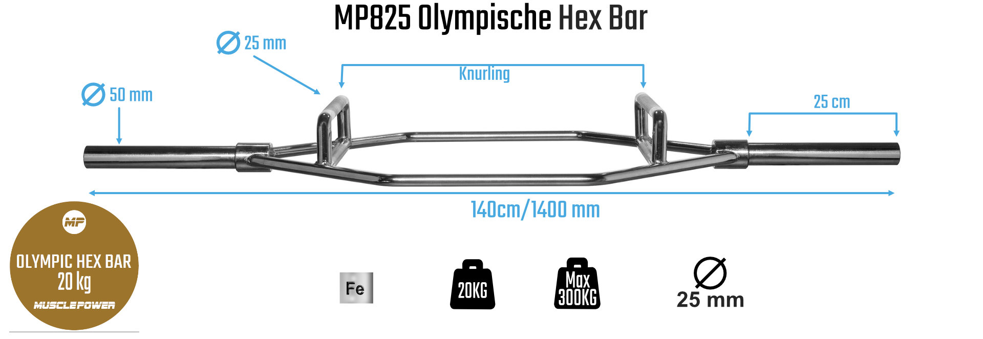 MP825 Olympische Hex Bar – 20 kg Trap Bar voor Deadlifts en Shrugs