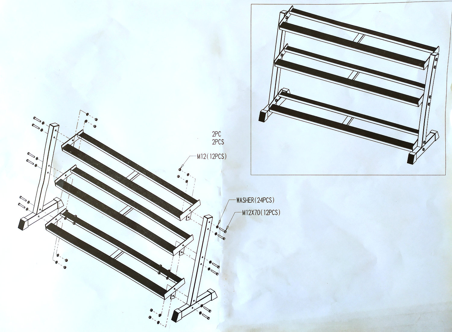- Geschikt voor het opbergen van dumbbells: Dit rek biedt ruimte voor zowel hexadumbells als PU ronde dumbbells.