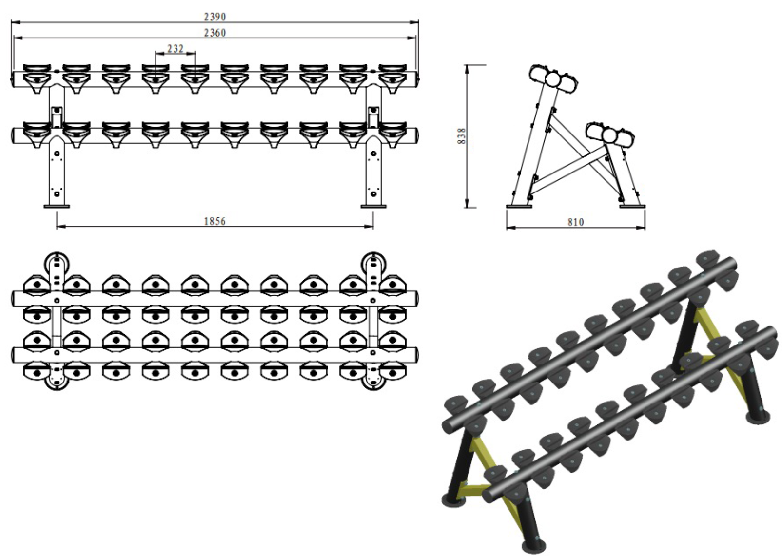 Gemaakt van hoogwaardig staal en afgewerkt met een robuuste poedercoating, biedt het MPOK0011D opbergrek maximale stevigheid en duurzaamheid. De stevige constructie zorgt ervoor dat jouw dumbbells veilig op hun plek blijven, terwijl de rubberen voetjes bescherming bieden aan je vloer en zorgen voor extra stabiliteit. Dit rek is ontworpen om jarenlang intensief gebruik te weerstaan.
