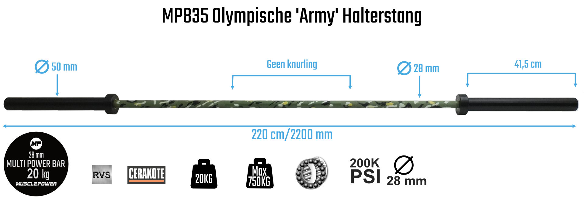 Multifunctionele Army Camo barbell met camouflage cerakote coating MP835