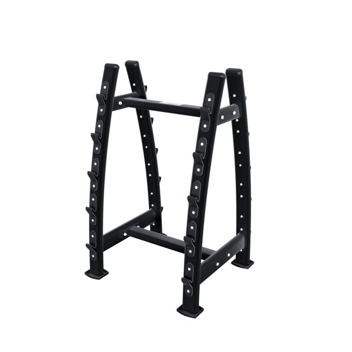 - Robuuste Constructie: Gemaakt van hoogwaardige materialen in een stijlvolle zwarte afwerking, zorgt dit rek ervoor dat je halterstangen veilig en gemakkelijk toegankelijk zijn.